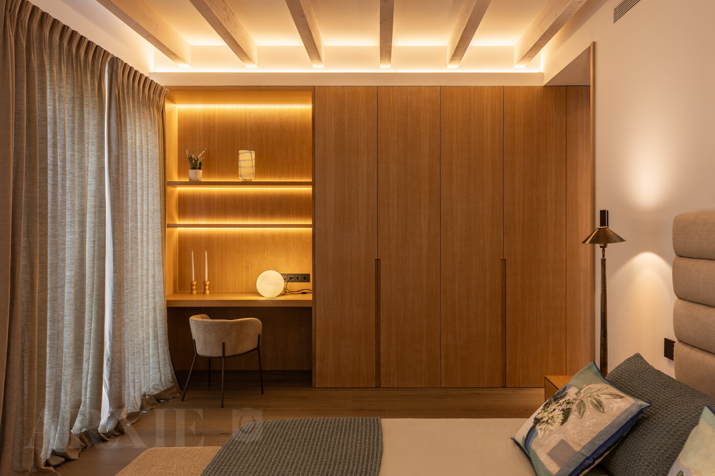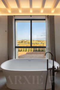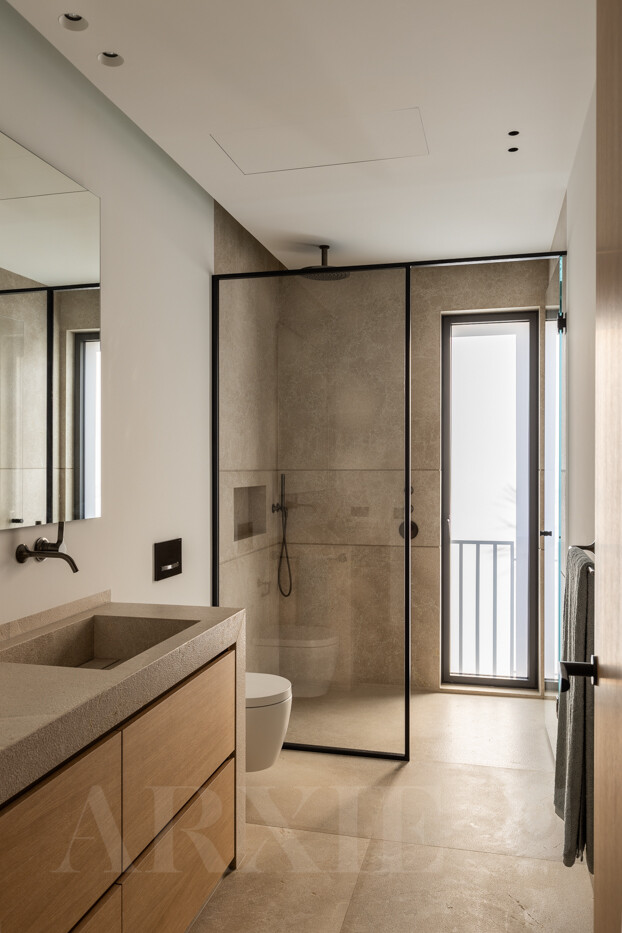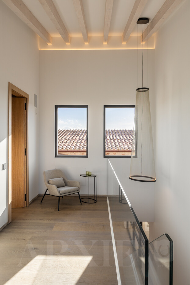 Cuatro dormitorios y cinco lujosos cuartos de baño, incluido un cuarto de baño principal con bañera exenta y ducha, garantizan el máximo confort. Los dormitorios disponen de armarios a medida. La calefacción por suelo radiante y el aire acondicionado, controlados por el moderno sistema Gira, garantizan un agradable clima interior.