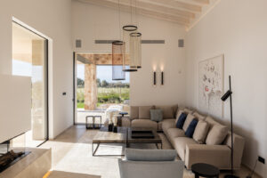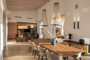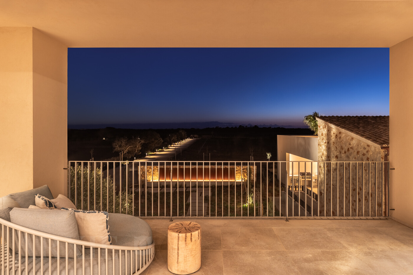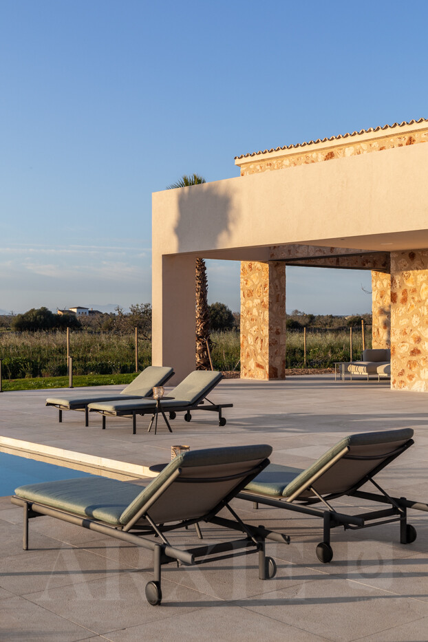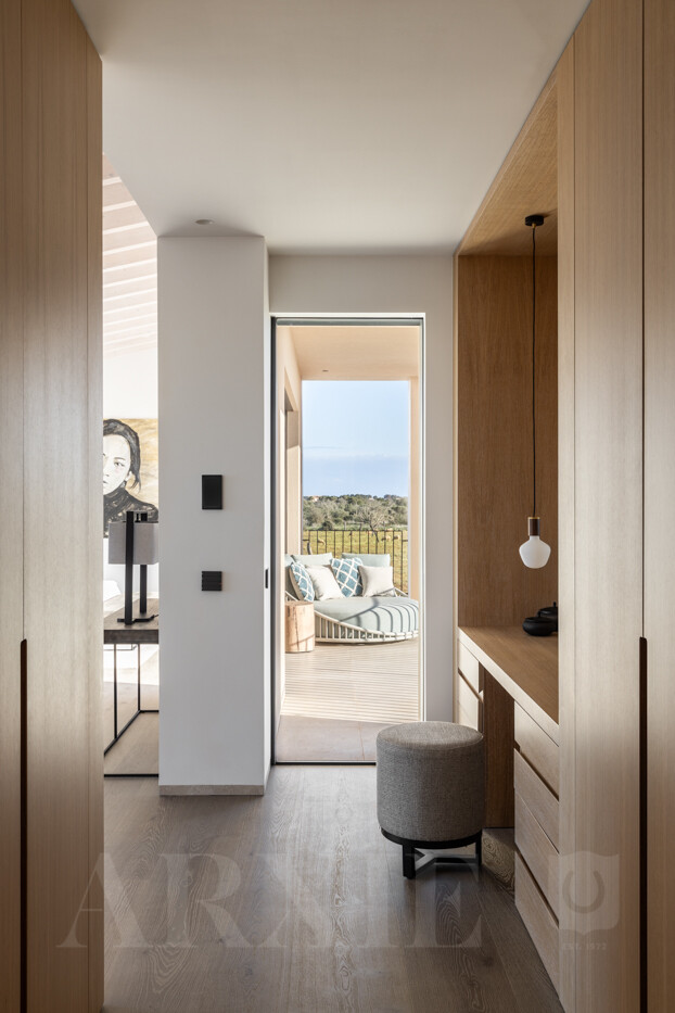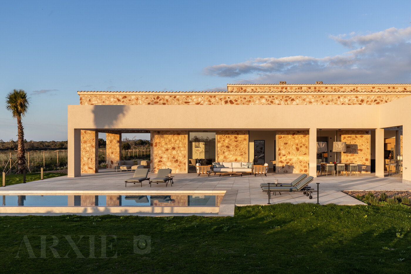 Esta excepcional finca se encuentra a pocos minutos de Cala Llombards en una parcela de 17.757 m². La propiedad, construida en 2024, le da la bienvenida con un largo camino de entrada bordeado de olivos e impresiona por su arquitectura minimalista y sus grandes fachadas acristaladas, que crean un ambiente luminoso y lleno de luz.