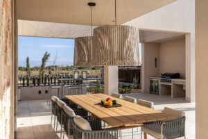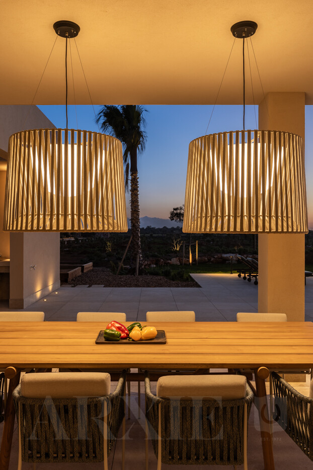 Sostenibilidad y confort van de la mano: un sistema fotovoltaico, un generador, una chimenea de gas y dos depósitos de agua con una capacidad total de 100.000 litros hacen que la casa sea autosuficiente y orientada al futuro. La espaciosa piscina desbordante se integra armoniosamente en la propiedad y ofrece total privacidad, así como una maravillosa vista de la naturaleza circundante. Las instalaciones exteriores se complementan con una terraza, zona de barbacoa, ducha exterior y WC.