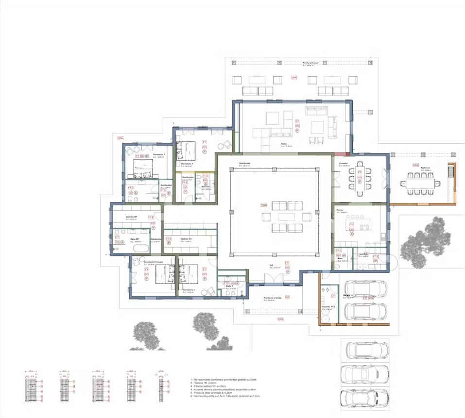 * 3 porches cubiertos